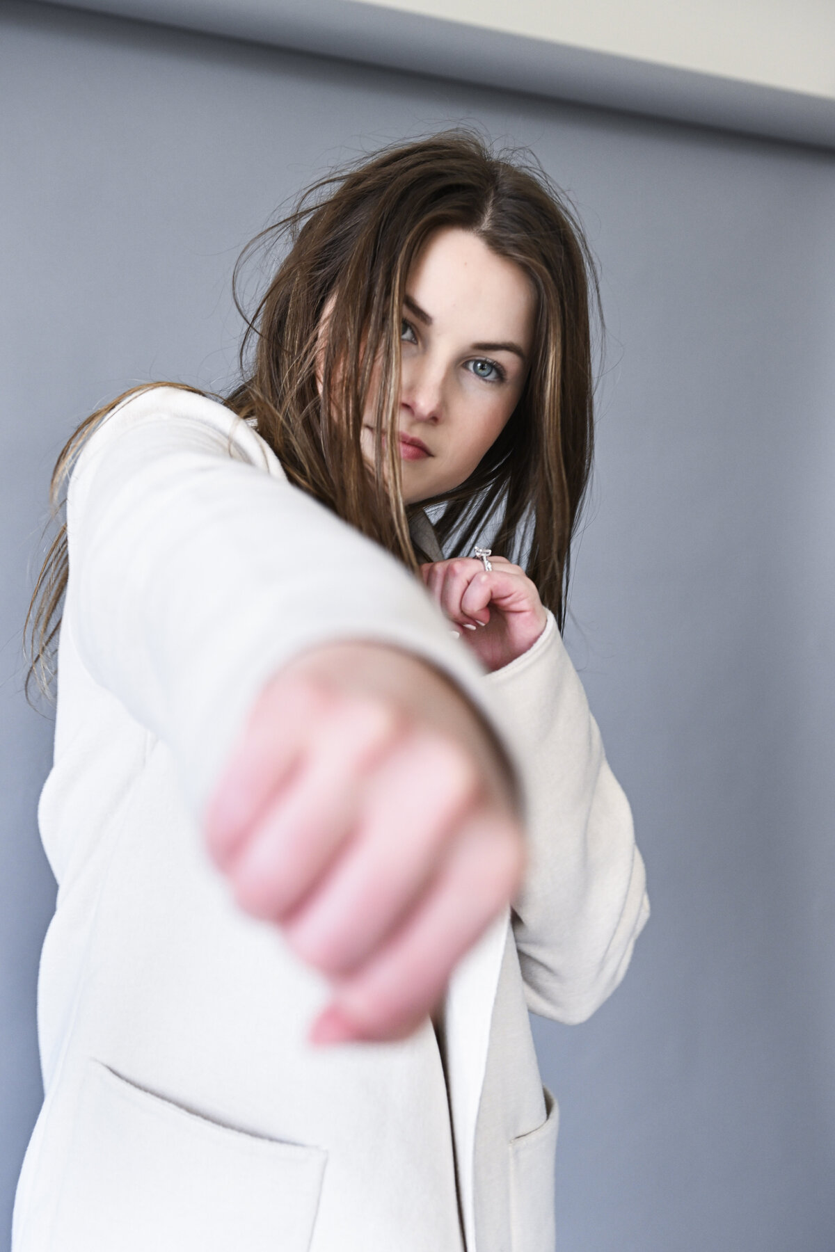 Social media influencer. Young, fresh, clean, minimal look for a burgeoning fashion and beauty brand. Colors are neutral and black & white. Editorial look of a stunning girl next door exuding a spectrum of emotions.
